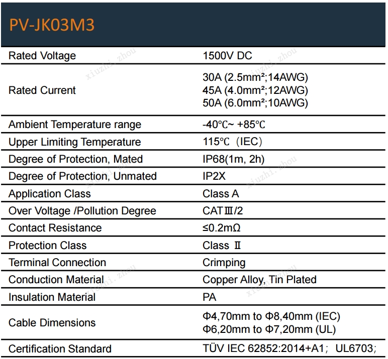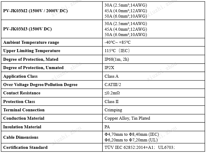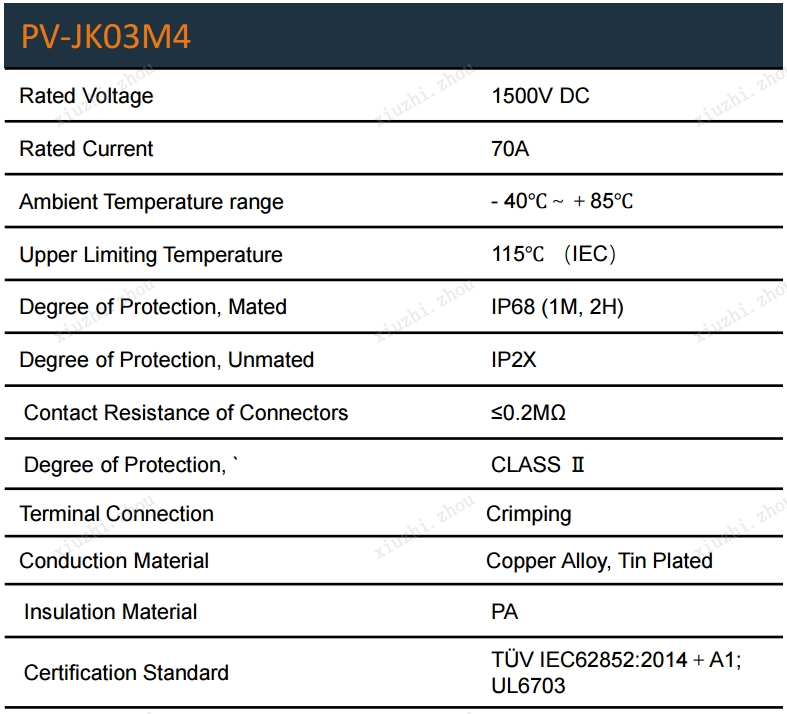 Ideally suited for connecting PV cables, connection photovoltaic modules and for connection to solar inverters.