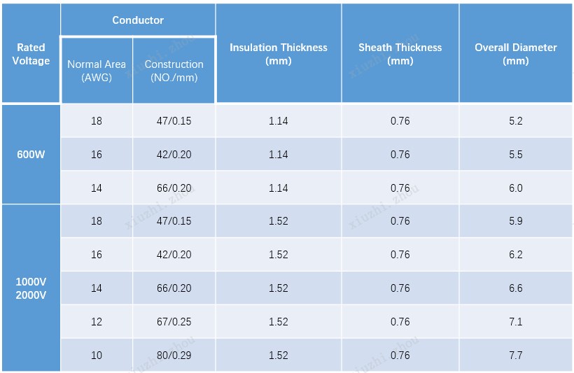 Outer Jacket: low smoke halogen free rubber: Irradiated crosslinked low smoke halogen-free polyethylene sheath material, red or black color.