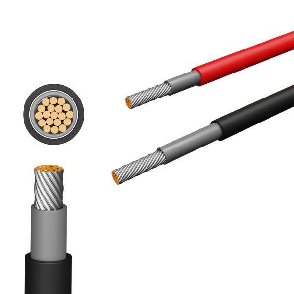Used in solar PV installations: It can withstand extreme environments such as high temperatures and ultraviolet light, and has good durability and anti-aging properties. In addition, the photovoltaic cable also has the characteristics of low smoke halogen-free, flame retardant, oxidation resistance, shock resistance and tensile resistance, which can ensure the safe and stable operation of the solar power generation system.